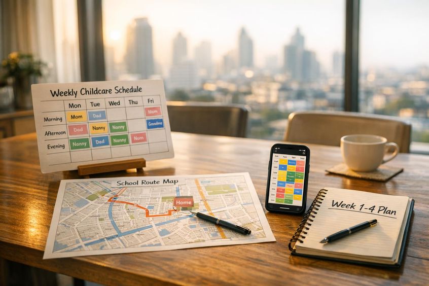 ဘန်ကောက်မှာ ကလေးတွေနဲ့ နေရာသစ်စတင်တဲ့ ပထမလဟာ အပြည့်စုံဆုံး ကလေးထိန်းစနစ်ကို ရှာဖွေရတဲ့ အချိန်မဟုတ်တတ်ပါဘူး။ ဒီအပတ် အလုပ်ဖြစ်တဲ့ စနစ်တစ်ခု တည်ဆောက်ပြီး နောက်အပတ်မှာ တဖြည်းဖြည်း ပြင်ဆင်တိုးတက်သွားဖို့က ပိုအရေးကြီးပါတယ်။